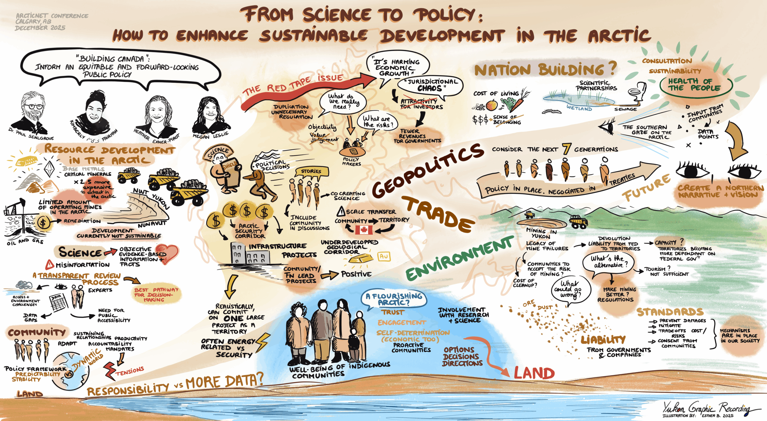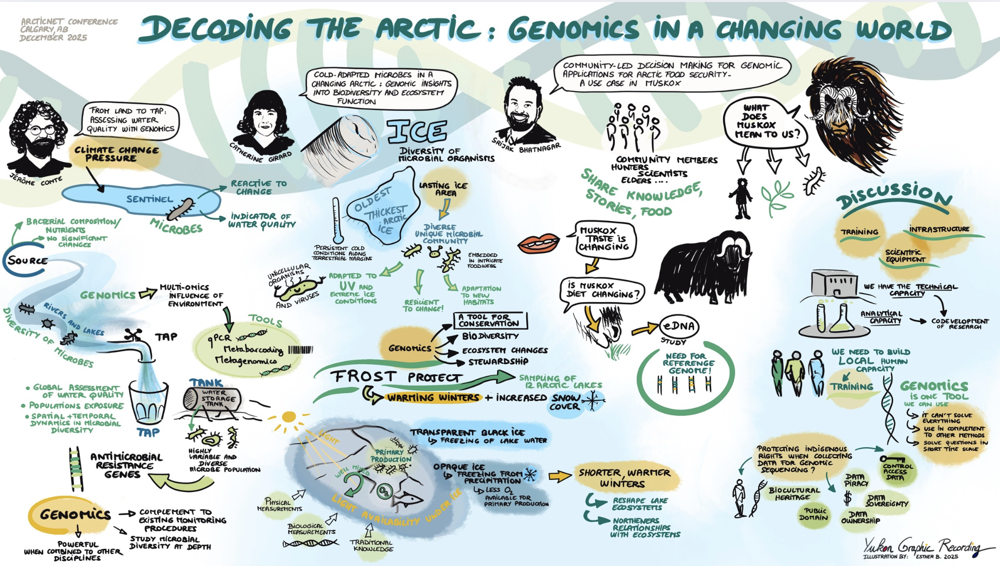 New to this year, ArcticNet hosted graphic recording artist Esther Bordet of Yukon Graphic Recording to help illustrate and disseminate the insightful information shared throughout the plenaries in an accessible and innovative way.
